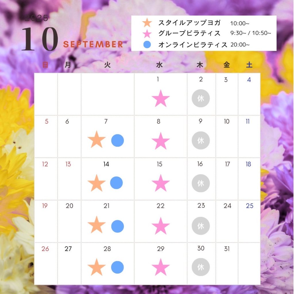 9月グループ・オンラインレッスン、店休日予定...