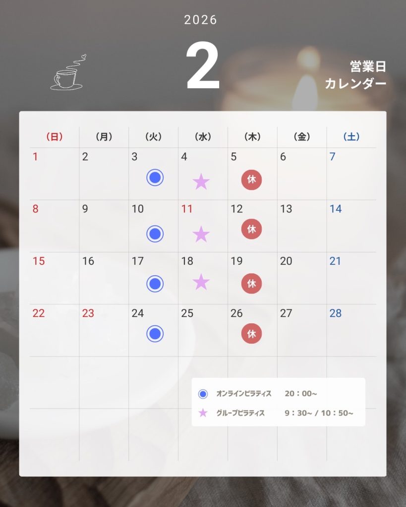 2月オンライン・グループピラティスのお知らせ...